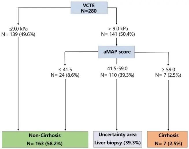 圖2. VCTE-aMAP序貫算法在研究組中診斷肝硬化的效能